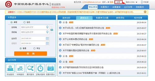 电脑登陆:www.12306.cn 首页,选择客运服务,进去后点击右上角的注册。